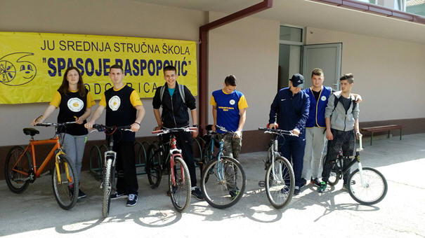 bicikla u atrijumu škole. Obavljene je promotivna